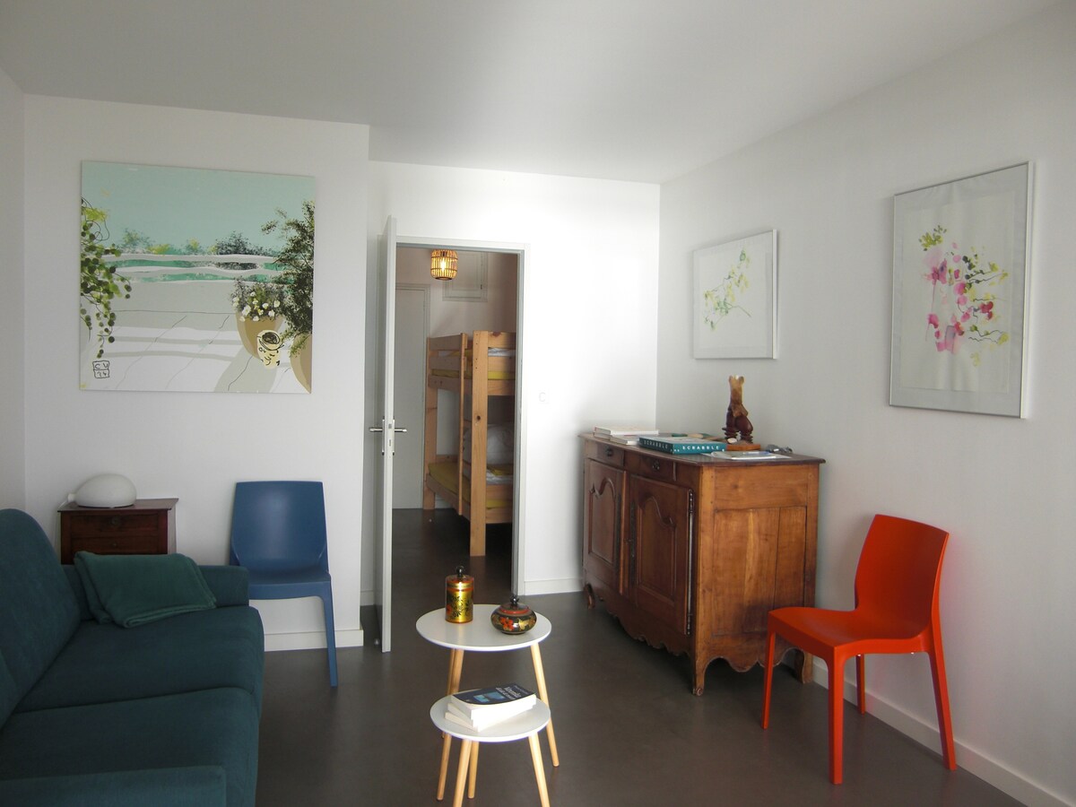 A 1 minuto a pie de las tiendas del puerto y la playa, estudio amueblado para 2 personas. Segunda planta con ascensor. Sala de estar con sofá cama de 160X200, TV, internet de fibra Cocina amueblada y equipada: placa de inducción de 2 fuegos, heladera, cafetera Tassimo, microondas. Cuarto de baño con inodoro suspendido, ducha, lavadora. Amplio estacionamiento público (de pago del 01/04 al 31/10, 8€/día, 35€/semana, gratuito del 01/11 al 30/03) al lado de la residencia. Bicicletas Sábanas proporcionadas a partir de 7 noches