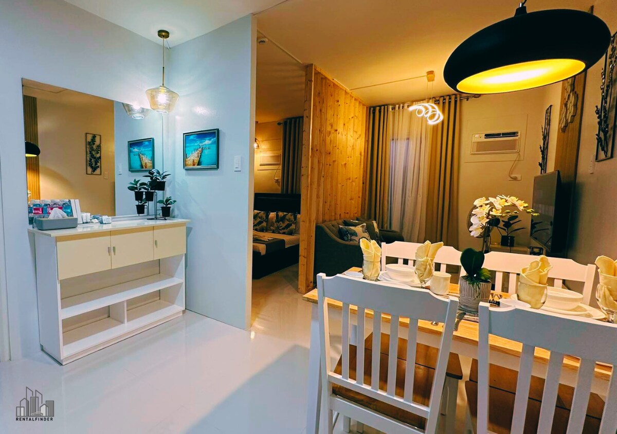 Apartamento/apartamento elegante, totalmente amueblado y asequible con balcón. Un hogar lejos de casa. Ideal para parejas o una compañía de 2 personas. Tranquilo y bien ubicado, cerca de servicios, aeropuerto y lugares turísticos. Acceso gratuito a la piscina, la casa club y el gimnasio. Un 'moderno Tagnabua' inspirado en la propiedad como un reconocimiento de la cultura indígena de la isla de Palawan. Wifi disponible con TV, inodoro en suite y ducha, cocina pequeña completa con utensilios y juego de comedor. Estancias cortas y largas.