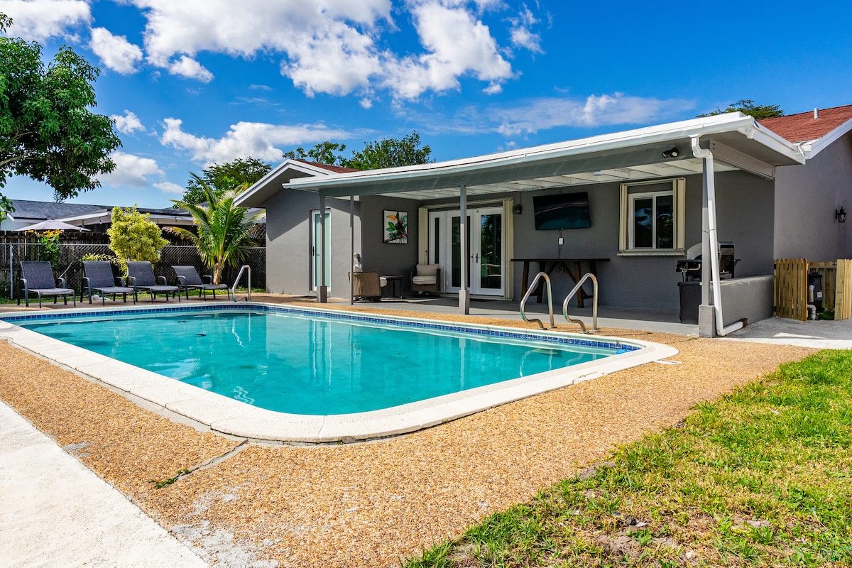 Welcome to Paradise! Enjoy private, cozy and completely remodeled home with everything to enjoy your vacation in sunny South Florida. Lush tropical landscaping, large private pool, patio & BBQ, screened enclosure, washer/dryer, vaulted ceilings, you'll feel right at home. Located in Palm Aire, minutes to Casino's, I-95, Florida's Turnpike, Publix market and Chase stadium. Forget looking elsewhere, you'll enjoy your stay. Approved City of Ft Lauderdale Vacation Rental Cert #1700731