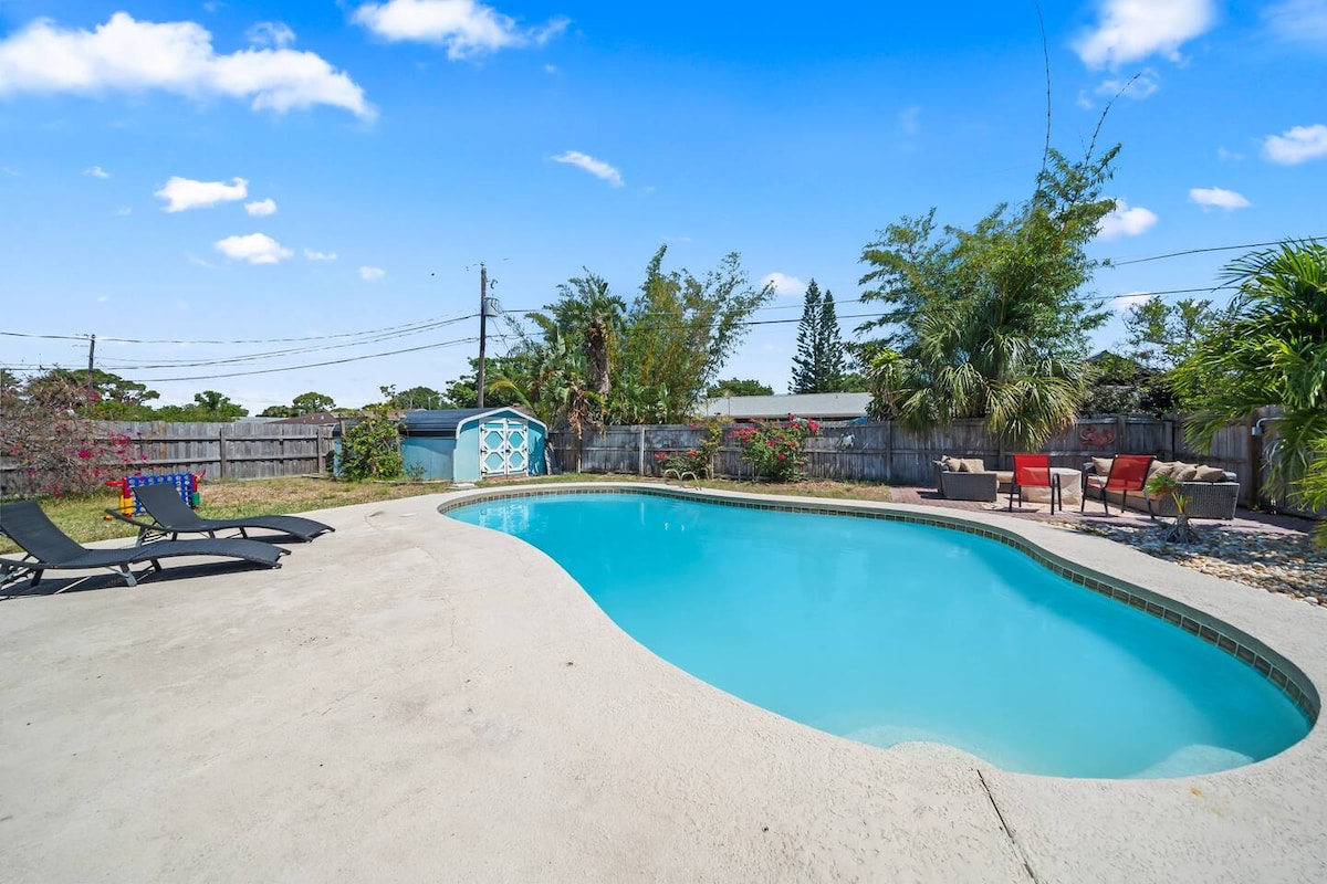 ¡Bay Bungalow es un alojamiento adecuado para cualquier ocasión! Desde un retiro para parejas, vacaciones familiares o una escapada de celebración, o incluso unas vacaciones en casa. ¡Este alojamiento te ayudará a celebrar o relajarte tanto como la ocasión lo requiera! * Piscina climatizada y valla de privacidad. * Sala de juegos con tejo, futbolín, sistema de juegos de televisión clásico y muchos juegos de mesa. * A 25 minutos del complejo USSSA Space Coast. * Equipo de playa. * Horno de pizza y parrilla * TV en el porche * A 20 minutos de la playa * A menos de 5 minutos de tiendas y restaurantes * Llegada autónoma