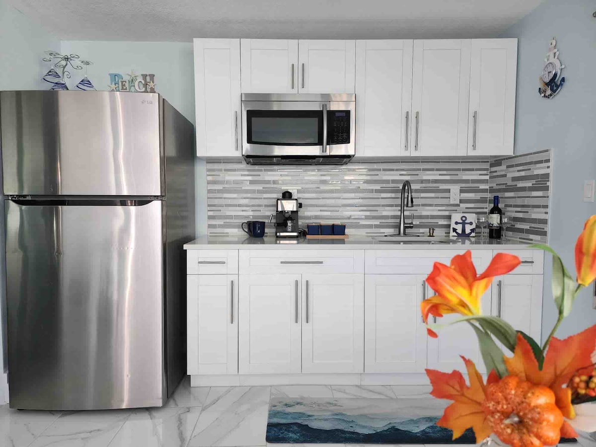 This beautifully remodeled one-bedroom, one-bath apartment offers a bright open-concept layout with a full kitchen and spacious living area. Thoughtfully furnished with your comfort in mind, the space feels warm and inviting, with lush greenery and stylish details throughout. The bedroom features a king-size bed and closets for ample storage. The modern bathroom boasts a stunning custom walk-in shower. Just two blocks from the water, this is the perfect blend of comfort, style, and location.