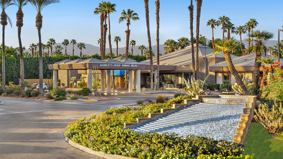 Este es el tiempo compartido de Marriott, la disponibilidad cambia a diario. Unidades disponibles en 3 tamaños: estudio, 1 y 2 dormitorios. El precio suele ser un 50 % más alto por cada mejora. Consulta la disponibilidad. Las villas Desert Springs de Marriott, ubicadas en la hermosa Palm Desert, California, a poca distancia en coche del Parque Nacional Joshua Tree y las Dunas de las Bermudas, rodeadas por el Palm Desert y escondidas entre montañas pintorescas, son el destino perfecto para los amantes del sol, los amantes del spa y los amantes del golf. ¡Disfrútalo!
