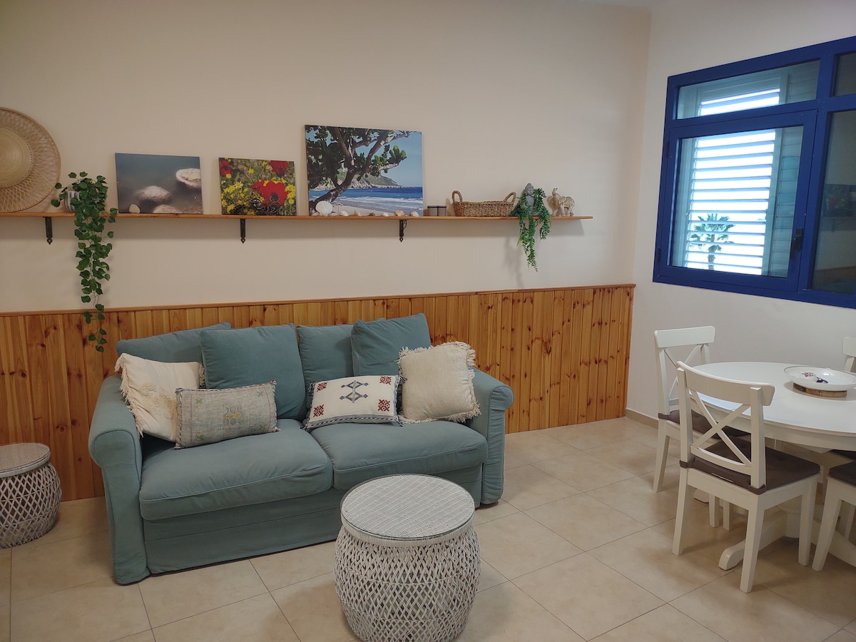 Un dulce alquiler vacacional en el mar, con un jardín y un pequeño patio en el Kibbutz Palmachim, a 20 minutos de Tel Aviv. El kibbutz tiene una tienda de comestibles, una cafetería en la playa, un museo marino, deportes acuáticos El entorno natural es rico en flora y fauna y encantadoras rutas de senderismo: el Parque Nacional Palmachim Beach, el mar de Yavneh, la Reserva Natural, el estuario Nachal Sorek, senderos en el huerto y más. La unidad se encuentra en un barrio residencial, por lo que no es apto para fiestas y entretenimiento ruidoso.