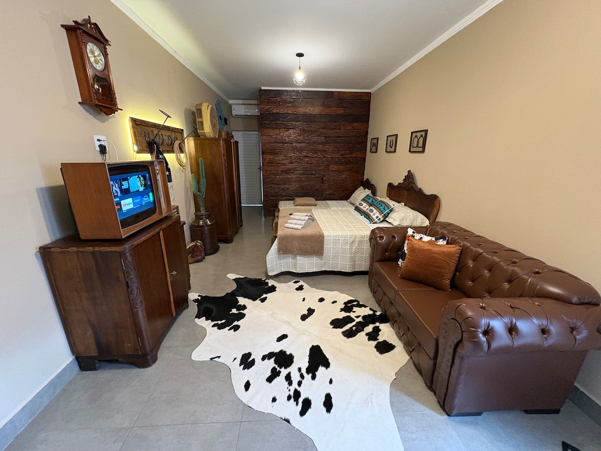 ¡Tu hogar lejos de casa! Apartamento acogedor y totalmente equipado para alojar cómodamente hasta 4 personas. ¡Perfecto para familias! Qué te encantará: • Comodidad total: aire acondicionado, ventiladores y ropa de cama incluidos. • Cocina práctica: refrigerador, microondas, minihorno, licuadora, ollas y cafetera de cápsulas 3 Corações. • Entretenimiento garantizado: TV inteligente con acceso a Netflix y Globoplay + wifi rápido. • Practicidad: hierro. Información importante: