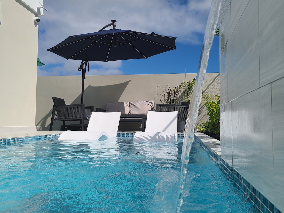 Moderno de 3 Habitaciones con Piscina y Cascada