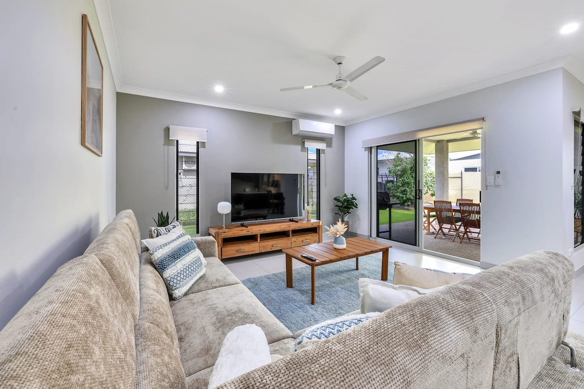 ✨Relax in style at this newly built 3-bedroom retreat in Zuccoli✨ Designed for families and groups, enjoy alfresco dining with a BBQ, unwind by the sparkling pool with a drink in hand, or catch the latest movies in the private media room. Parents can relax in the spacious living and dining areas while the kids stay entertained. Nestled in a quiet suburb just 25 minutes from Darwin CBD and the airport, this home blends comfort, convenience, and luxury.