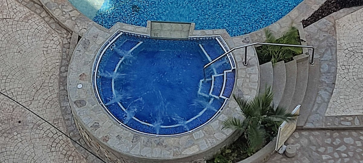 Déjate maravillar por la impresionante vista al mar que podrás disfrutar desde cada rincón de la casa. Cada mañana despertarás con el relajante sonido de las olas y una vista que te dejará sin aliento! - Apartamento perfecto para familia o amigos, puede alojar hasta 4 personas - Piscina y acceso a la playa - 7 minutos de centro comerciales (La Vela, Costa Azul) - 5 minutos de Playa La Caracola - Distancia a pie de restaurantes y comercios ¡Esperamos brindarte una experiencia inolvidable!