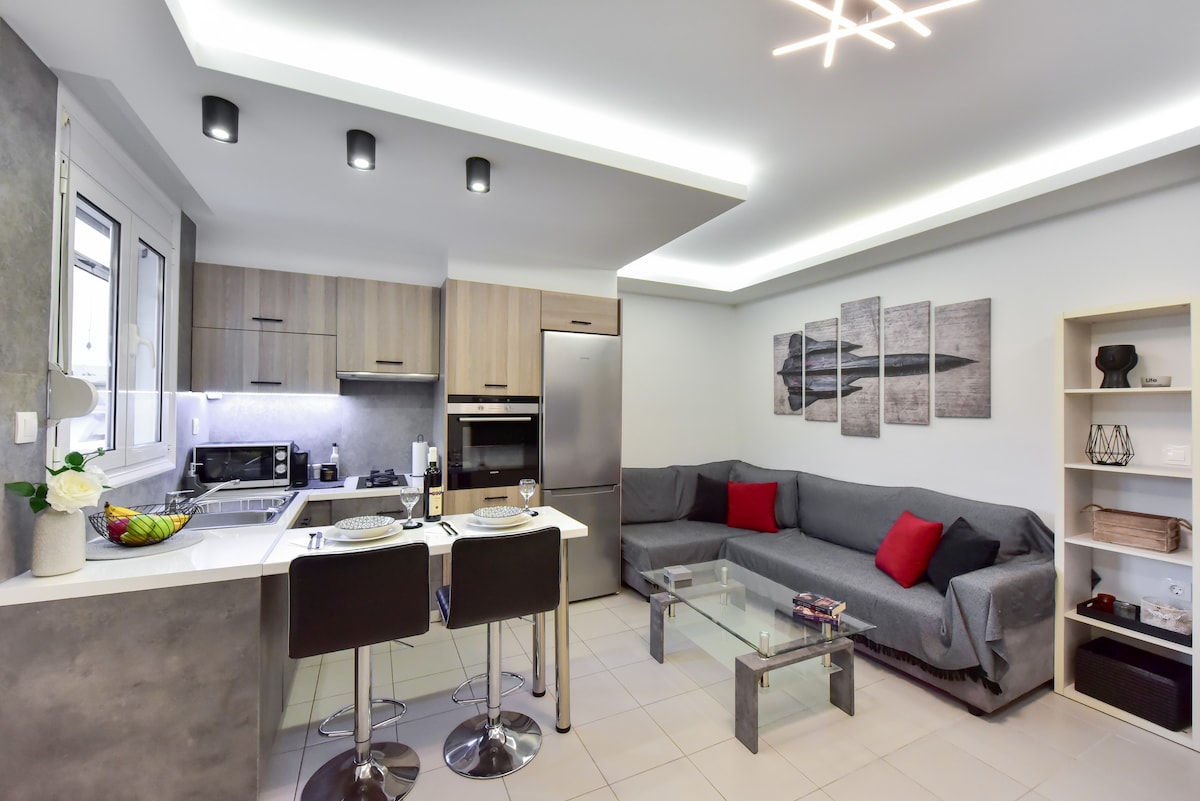 Vida de alta gama para nómadas digitales y amantes del bienestar en Heraclión, Creta. Con una ubicación ideal en un barrio tranquilo con fácil acceso a la carretera nacional E75 para excursiones de un día y días de playa. Cuenta con estacionamiento protegido gratuito. La construcción terminó en noviembre de 2022, ocupa 135 metros cuadrados en tres plantas y está construida con materiales de primera calidad y comodidad en mente. Si quieres alojarte en Heraclión por trabajo, vacaciones o simplemente necesitas una escapada de bienestar durante unas noches, este loft tiene algo para todos.