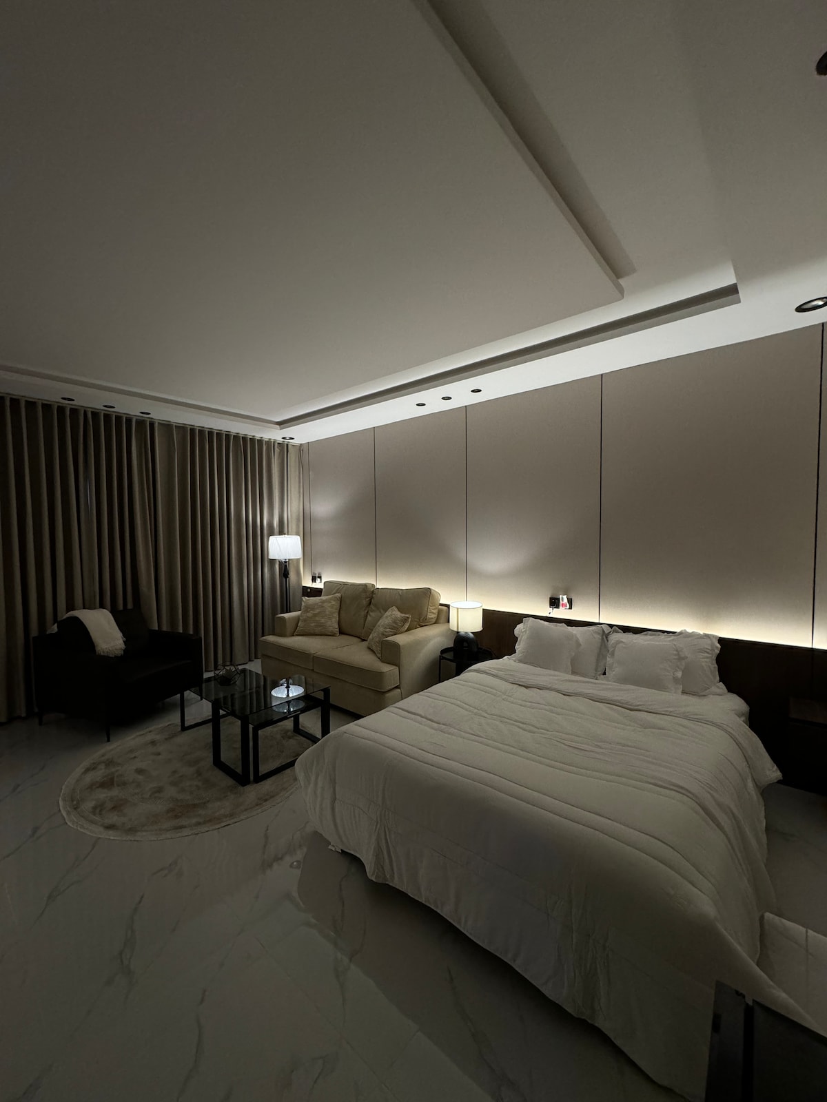 • 📺 Un programa de entretenimiento de lujo que incluye todos los canales deportivos e internacionales. • 🎬 Una plataforma para películas y series de alta calidad • 🌐 Wifi de alta velocidad. • 📺 Pantalla inteligente de 65 pulgadas para una experiencia de visualización cinematográfica. • 🛏️ Dormitorio lujoso con diseño elegante. • 🛌 Cama adicional a pedido por una tarifa • ✨ Decoración moderna con elegantes toques de hotel. • 🍽️ Restaurante disponible en el mismo edificio. • ☕ Muy buenos cafés cerca de la ubicación • 📍 Una ubicación estratégica distintiva y de fácil acceso • 🕊️ Privacidad y tranquilidad completas
