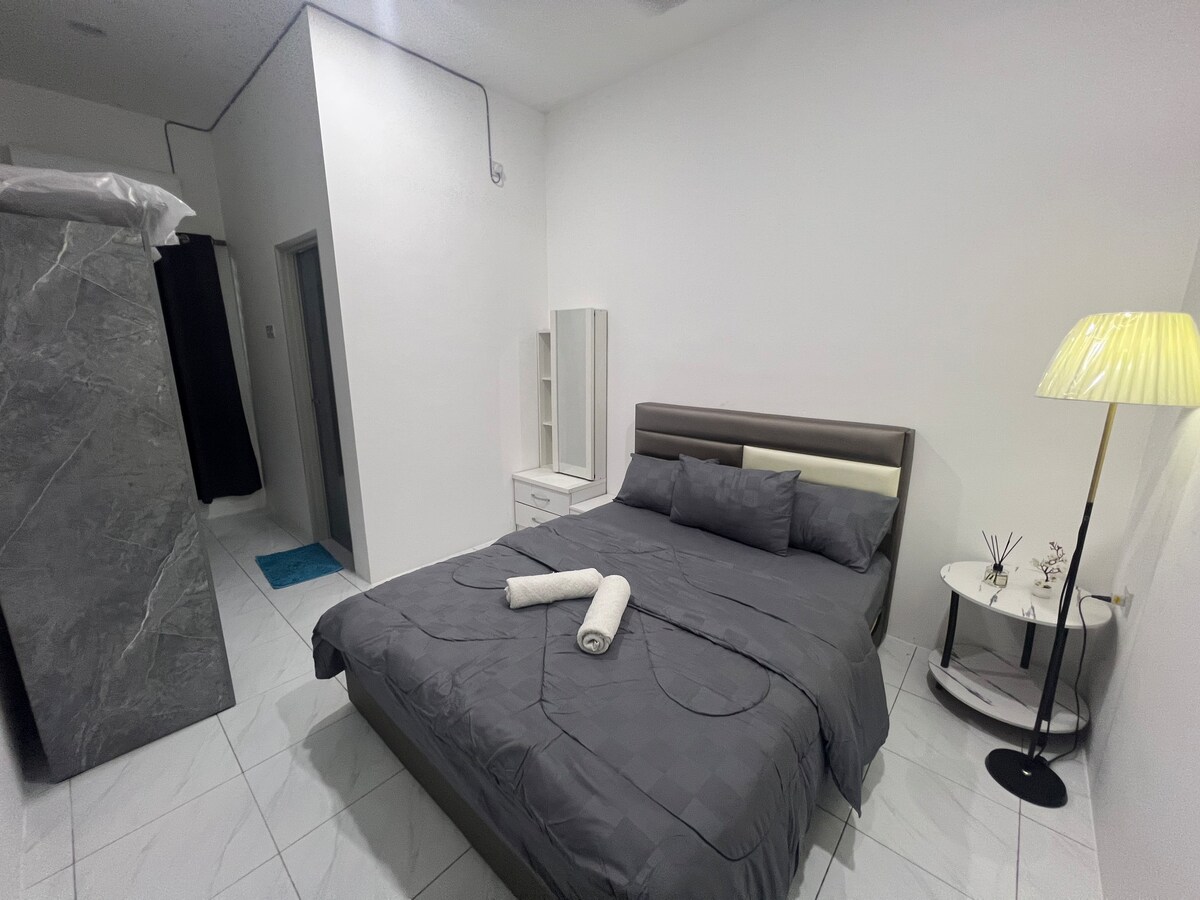 Casa de concepto Muji, casa con terraza de 3 dormitorios en Taman Samudera, enclavada en el corazón de Seri Manjung. Esta impresionante casa familiar totalmente amueblada seguramente te ofrecerá una sensación de comodidad, privacidad y una escapada tranquila y pacífica. Su ubicación estratégica con tiendas y restaurantes locales cercanos, a 5 minutos del centro comercial AEON, a 7 minutos del Hospital Seri Manjung, a 15 minutos de Lumut, Teluk batik y Jetty Pulau Pangkor. La opción favorita para viajeros de negocios, parejas y familias pequeñas.