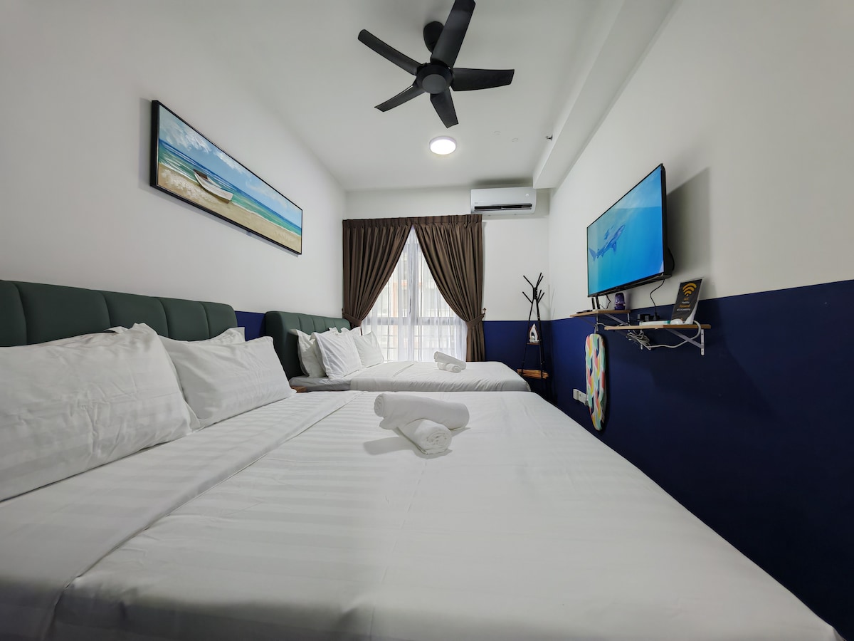 Disfruta de una divertida y relajante estancia familiar en nuestro elegante apartamento en K Avenue, Kota Kinabalu. Perfectamente situado, estás a solo 10 minutos de KK Town y del centro comercial Imago, a 8 minutos de la playa de Tanjung Aru y a 5 minutos de KKIA. Explora la calle Gaya en 15 minutos y camina hasta el puesto de comida Funky Farm en 5 minutos. Nuestro moderno apartamento cuenta con una acogedora sala de estar, una cocina bien equipada y cómodos dormitorios. ¡Reserva ahora para mayor comodidad y conveniencia en el corazón de Kota Kinabalu!