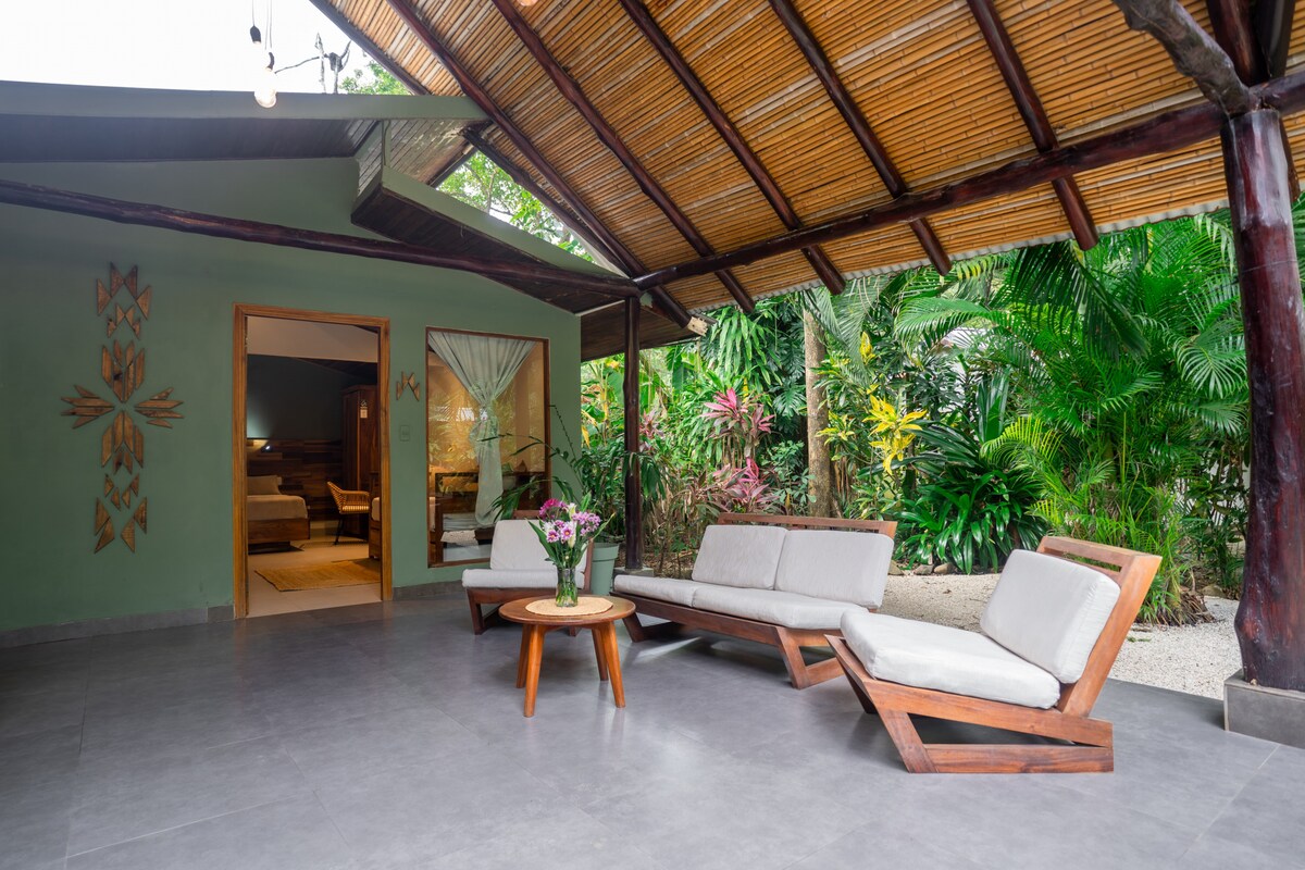 Coral Casita es un gran bungalow privado. Tiene un dormitorio separado, el alojamiento tiene una cama tamaño queen, y la habitación principal tiene una cama tamaño king y una cama de día. Este bungalow puede alojar hasta 6 personas. Coral Casita tiene un patio privado vallado y es una opción perfecta para familias o grupos más grandes de amigos.