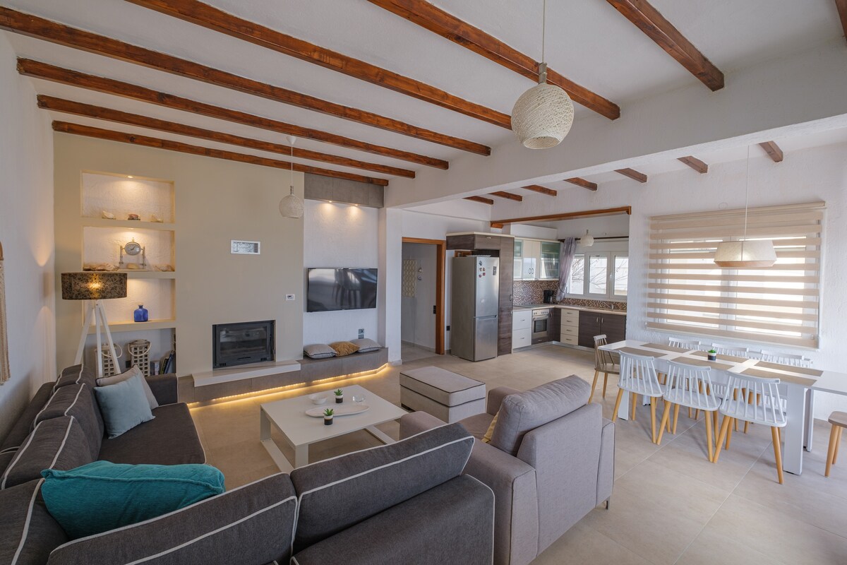 Fenestra Mare es un refugio tranquilo en Chios para parejas, familias y trabajadores remotos. A solo 5 minutos en auto de la ciudad y la playa de Agia Paraskevi, cuenta con estacionamiento privado, un balcón con vista al mar, aire acondicionado completo, dos acogedoras habitaciones dobles, una cocina totalmente equipada, mesa de comedor, sala de estar y un espacio de trabajo dedicado. Ya sea que te relajes de vacaciones o trabajes de forma remota, esta casa ofrece una base tranquila, práctica y elegante para disfrutar de todo lo que la isla tiene para ofrecer.