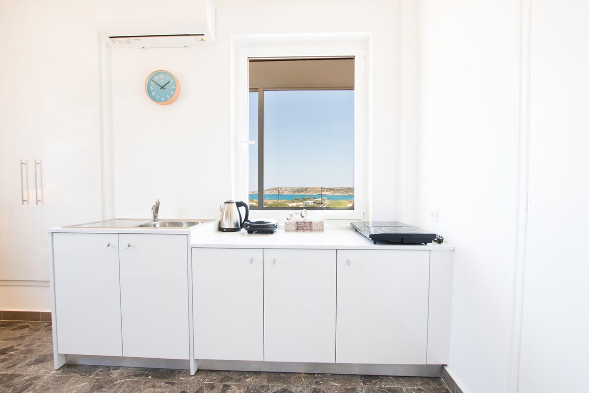 Te invitamos a experimentar toda la magia de Karpathos en nuestras sofisticadas suites, que te ofrecen todas las comodidades modernas, ¡haciendo que tu estancia en esta maravillosa isla sea realmente inolvidable! ¡Ofrecen una cama tamaño king, una hermosa sala de estar, una cocina equipada, un baño privado con dos duchas y un amplio balcón amueblado que tiene una impresionante vista de la piscina, el mar y el amanecer! Ubicado en la zona de Amoopi, en Kastelia.