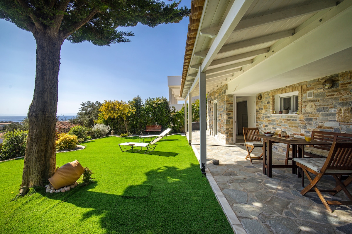 ¡Esta encantadora casa, totalmente renovada, es ideal para grupos de amigos o familias que quieren disfrutar de vacaciones tranquilas y explorar las playas de arena y aguas cristalinas más hermosas de la Riviera ateniense! ¡Se encuentra en una pequeña colina con una increíble vista al mar y a solo 8 minutos a pie de la playa de arena Mavro Lithari!