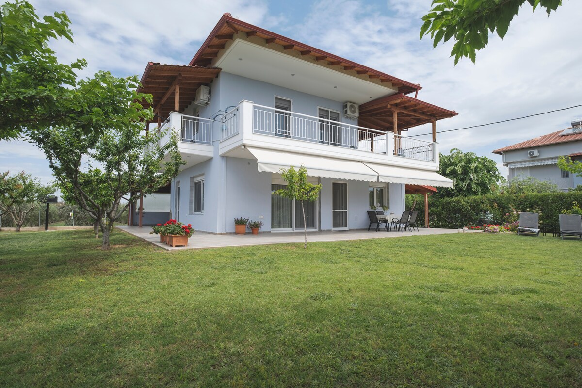 Hermosa villa adecuada para 1-2 familias con mucho espacio para niños o mascotas. Situada a solo 25 minutos del aeropuerto de Macedonia (SKG) y a 5 minutos (a pie) del mar. ¡Un lugar encantador para pasar unas relajantes vacaciones de verano! ¡Seguro que te encantará!