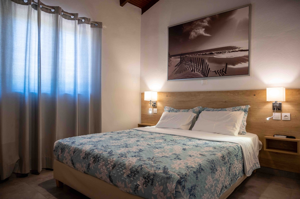 Nuestro estudio está en el segundo piso, con 1 dormitorio separado, cocina totalmente equipada y anfitriones de hasta 2 + un bebé (tenemos una cuna para bebés). Decorado en estilo isleño azul y blanco y perfecto para parejas o familias pequeñas. A 2 minutos caminando de la playa Tolo y no es necesario tener un coche para las vacaciones de playa de verano. Relájate afuera en cualquier momento bajo la sombra en el balcón gráfico con la impresionante vista sobre Tolo. También es la base perfecta para visitar todos los sitios históricos del Peloponeso.