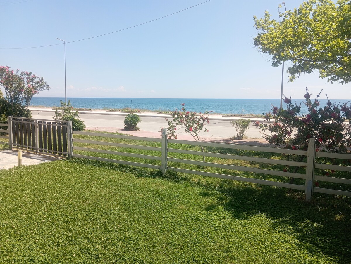 La mansión está situada frente a la costa, con vistas al amanecer, en un pequeño pueblo costero llamado Kastri Loutro, que bordea la playa más concurrida de Grecia central, Platamonas. En la planta baja de la mansión se encuentra este espacio de 60 m², dos dormitorios (1 privado y uno compartido), cocina, sala de estar, aseo, terraza privada y aparcamiento. La organización es adecuada para alojar de 2 a 4 personas. Adecuado para familias.