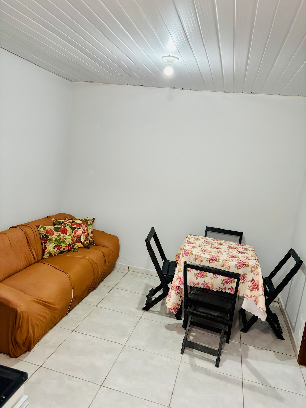 Está a 1 cuadra de la playa. Con sala de estar/cocina (bicama) + 1 dormitorio (suite, cama doble), tiene todas las comodidades para que el huésped ahorre $ y cocine en el lugar (estufa, nevera y utensilios domésticos, barbacoa y lavandería al aire libre). Tiene capacidad para 4 personas. Está en la parte trasera de mi casa, tiene una puerta divisoria entre las casas. Se admiten mascotas, siempre y cuando sean dóciles. El auto debe estar estacionado paralelo a la calle (vecindario tranquilo). Se advierte sobre el check-in después de las 9:00 p. m., ya que serán evaluados.