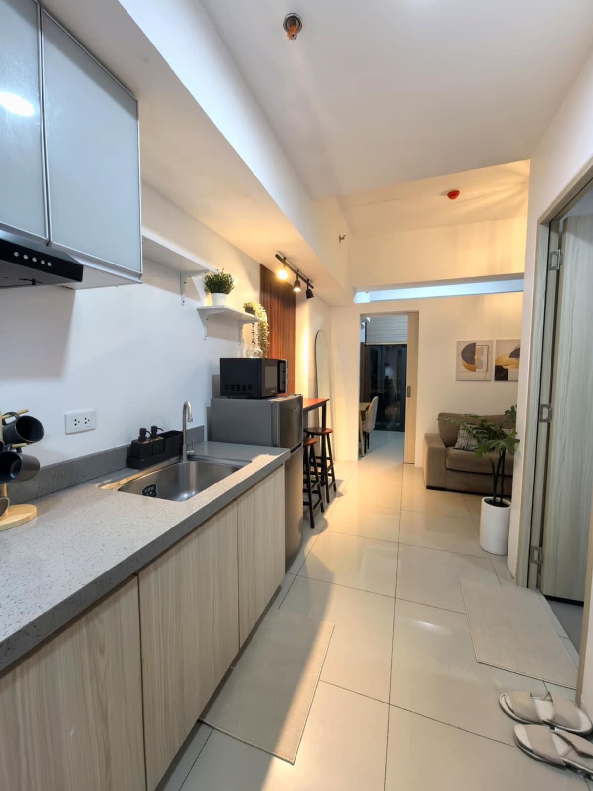 Despierta con las palmeras tropicales como tu vista desde tu cama a través de la puerta de vidrio. Cuenta con cama tamaño queen y colchón orto de calidad hotelera, almohadas y ropa de cama para una experiencia de lujo para dormir. Equipado con tus necesidades básicas de cocina pequeña. A 800 metros del centro comercial Mall of Asia, a 20 minutos del aeropuerto, teatros, Explanada, Con alfamart, Starbucks y restaurantes en la planta baja. La piscina es accesible por una tarifa. Salta directamente desde tu balcón a la piscina después del registro previo y accede fácilmente a tu unidad por un paso dedicado.