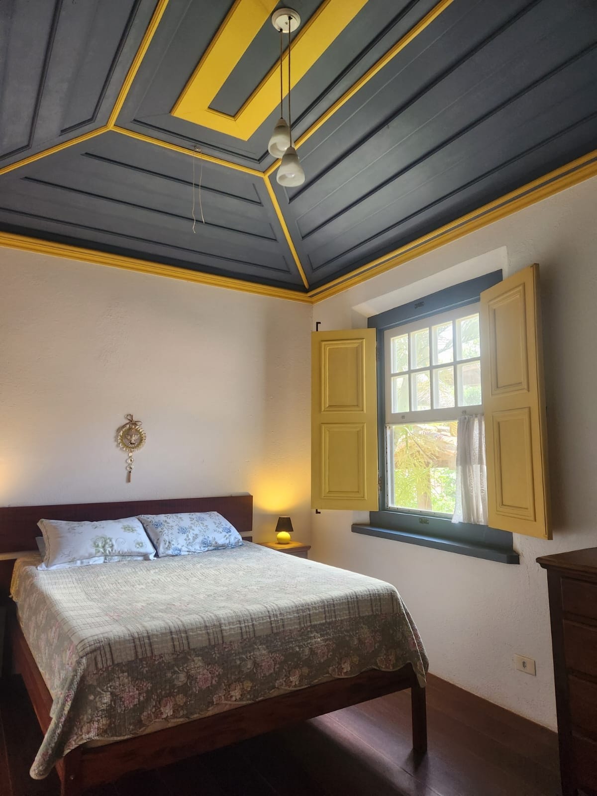 Contempla Paraty a través de los ojos de uno de sus residentes más ilustre. Pasa días en la casa que fue el gran actor Paulo Autran, en el Centro Histórico. En esta suite que llamamos la suite Cravo, tendrás una gran cama tamaño king y un enorme baño, aire acondicionado y wifi. La ropa de cama prémium, el servicio de habitaciones y el desayuno se incluyen con los productos típicos. El agua mineral y la cerveza se dejarán disponibles para tu consumo, así como otras golosinas, reemplazadas diariamente. Te sentirás en casa.