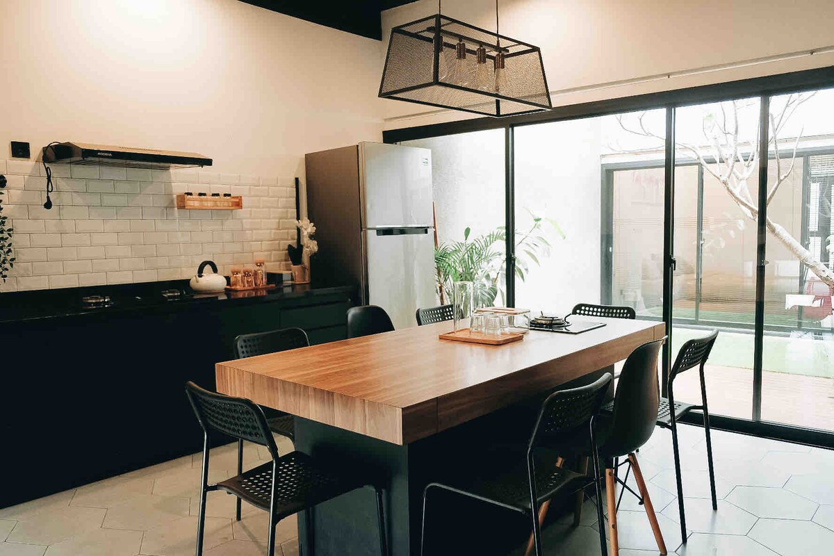 Rumah Kuki está en las tierras altas de Lembang, a solo media hora de Bandung. Se puede reservar para sesiones de fotos o para relajarte en tu tiempo libre. Tenemos un entresuelo, un dormitorio con un concepto de planta abierta, 1 baño y un jardín compartido. Hecho para 2 personas, puede caber 3. No es seguro para niños menores de 12 años. Ubicado en un área de jardín compartida y HAY MASCOTAS EN LAS INSTALACIONES QUE PUEDEN CAUSAR RUIDO.