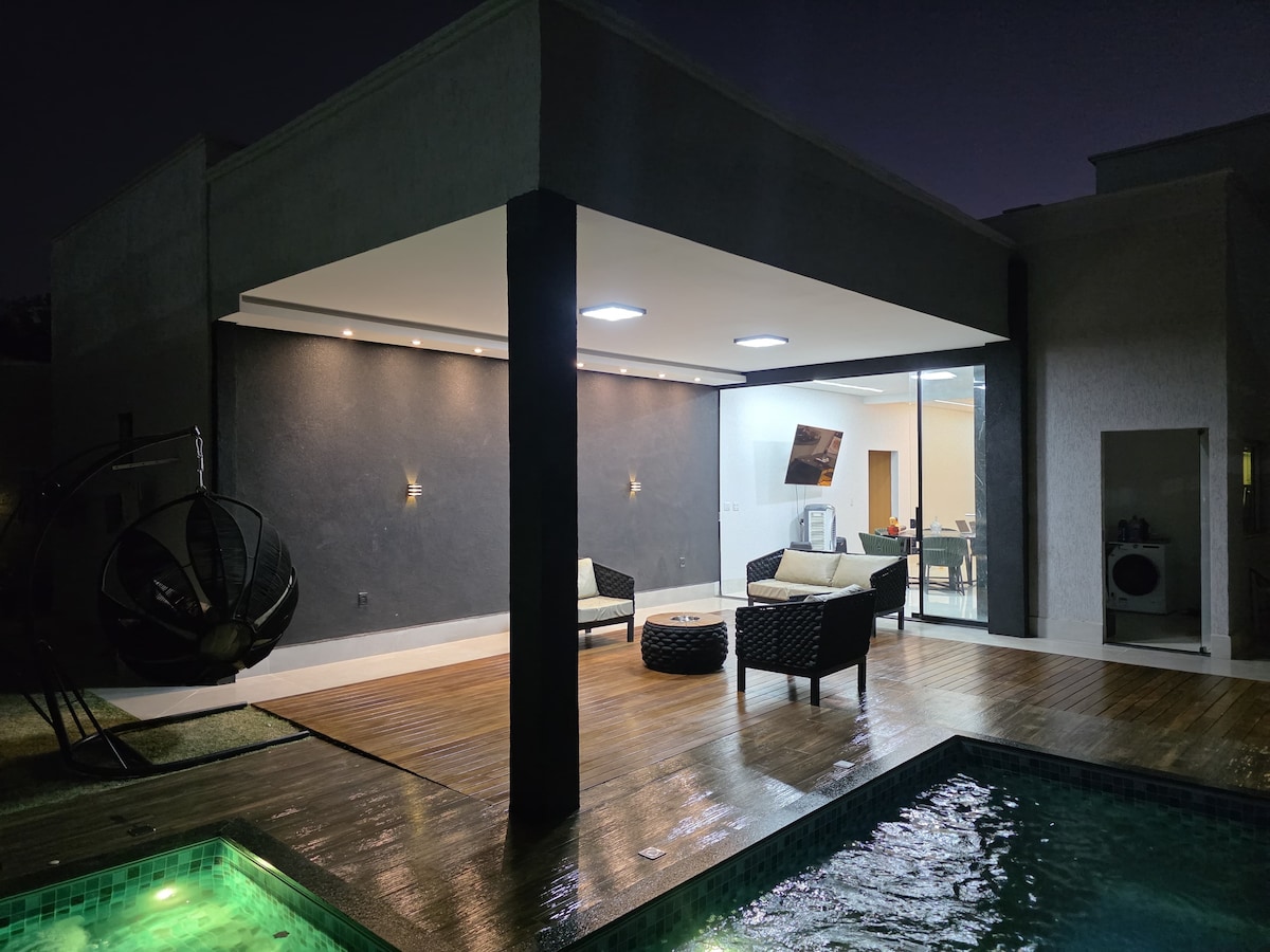 Disfruta de una estancia inolvidable en esta encantadora casa moderna con 2 dormitorios (1 suite con armario) y 2 baños. Las amplias habitaciones, la gran altura y la elegante decoración garantizan comodidad y estilo. Tiene aire acondicionado en las habitaciones, una cocina completa, una zona gourmet con una zona de barbacoa y una hamaca, además de 1 espacio cubierto. Se admiten mascotas y está ubicado en Setor Nova Switzerland, a solo 200 metros del parque Vaca Brava y cerca de McDonald's, Domino's, panaderías, farmacias y supermercados.