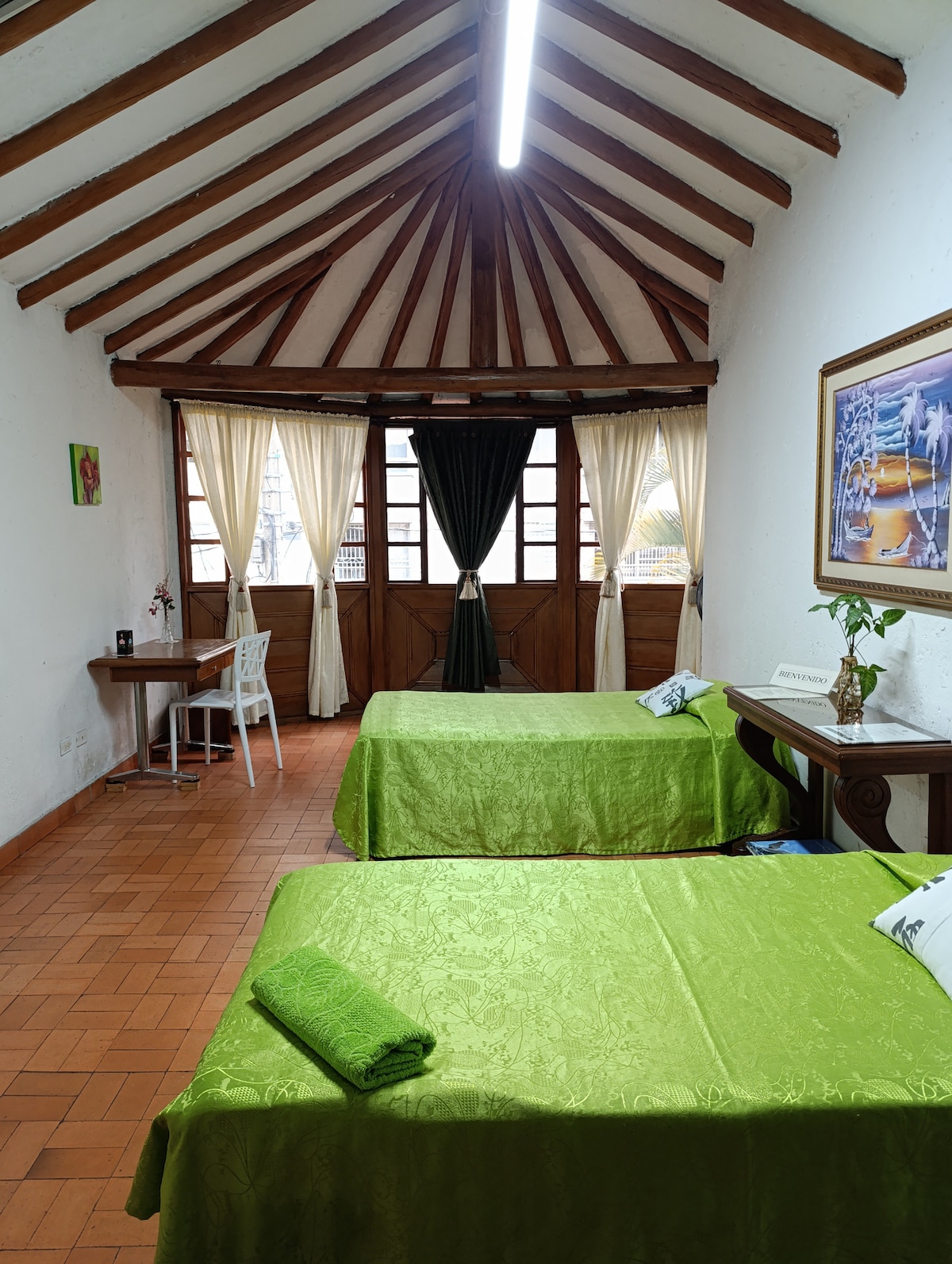 ¡Déjate sorprender por nuestro espacio acogedor y visualmente llamativo! Ubicada en un barrio tranquilo y transitable, Amanda es el alojamiento perfecto para tu estancia en Medellín. Con Internet de alta velocidad, es ideal para trabajar a distancia. A solo una cuadra de una avenida principal, tendrás fácil acceso al transporte público, además de supermercados y restaurantes cercanos. ¡Una estancia cálida y elegante te espera!