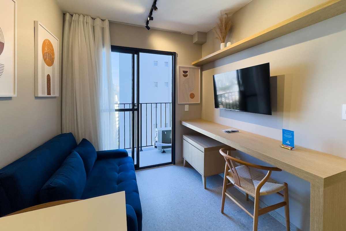 ¡Ubicación inmejorable en el hotel más deseado de Vila Olímpia! Frente a Shopping Vila Olímpia y a solo unos pasos de la Av. Faria Lima, Rua Funchal, Shopping JK Iguatemi y Parque do Povo. El departamento está totalmente equipado para hacerte sentir como en casa, con todas las comodidades y servicios de la marca Radisson. Todo a tu alrededor: excelentes restaurantes, tiendas, mercados y acceso rápido al aeropuerto de Congonhas. La opción ideal para aquellos que buscan practicidad, comodidad y sofisticación.