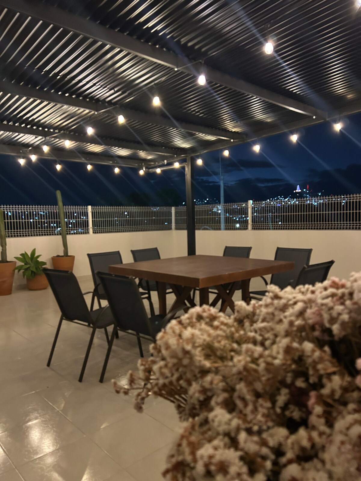 Disfruta de una estancia tranquila en esta casa familiar ubicada en Las Terrazas, Comitán. Ideal para grupos pequeños, cuenta con 2 recámaras, cocina equipada, patio amplio con vista al campo de futbol y lavandas al frente. Perfecta para descansar, trabajar o convivir. Incluye WiFi, lavadora, zona de trabajo y hamaca.