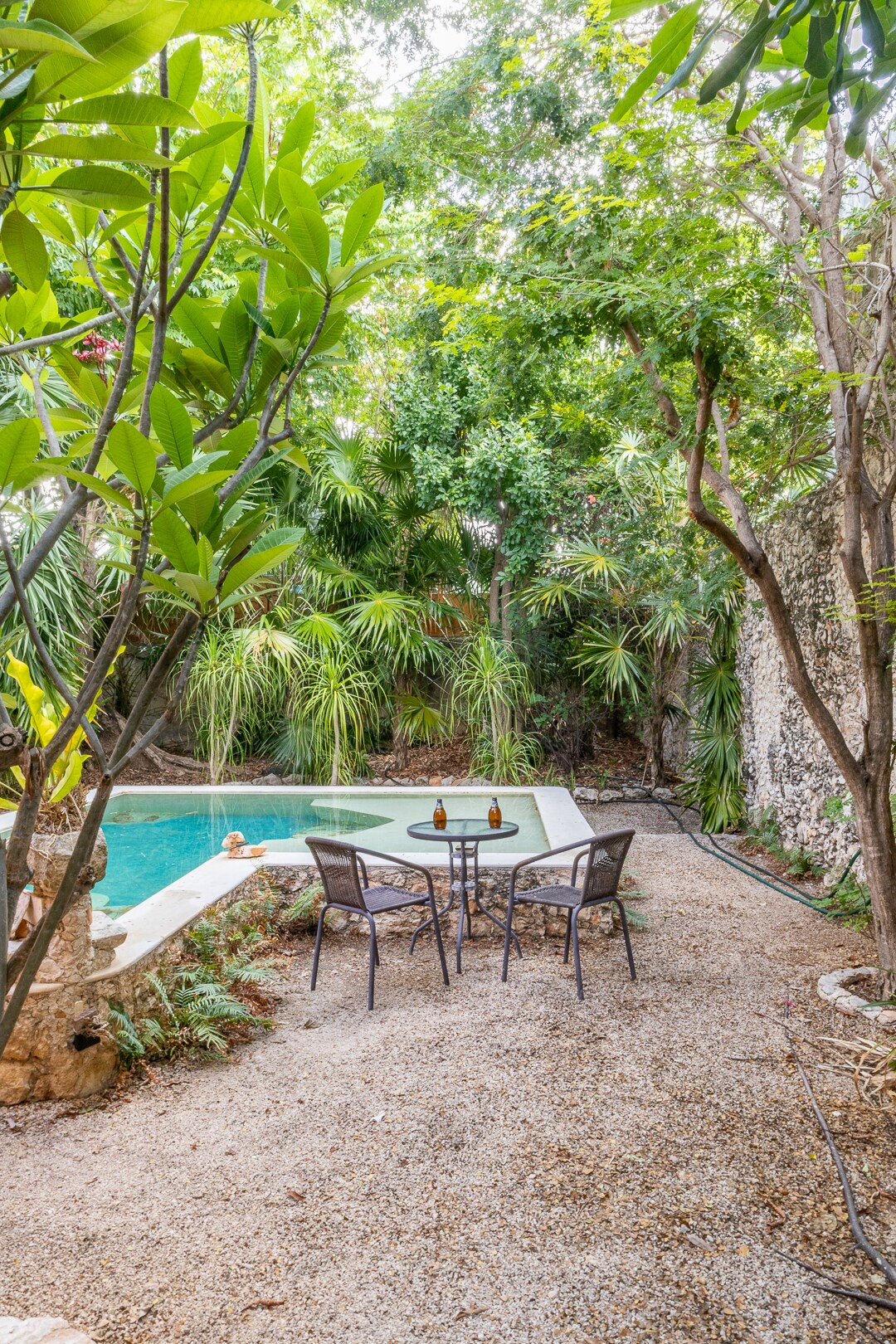 Amplio departamento dentro de una casa, perfecto para 2 personas. Ubicado al oriente del centro de Mérida, cerca del barrio del ChemBech a 20 minutos a pie del zócalo. Único en estilo y diseño, con acabados de lujo, garantizamos privacidad lejos del bullicio del centro y la sensación de estar en un oasis. Cuenta con sala, comedor-cocina equipada, habitación con baño, terraza techada, piscina-jardín. No se permiten visitas de personas externas a la reserva, o fiestas dentro del alojamiento.