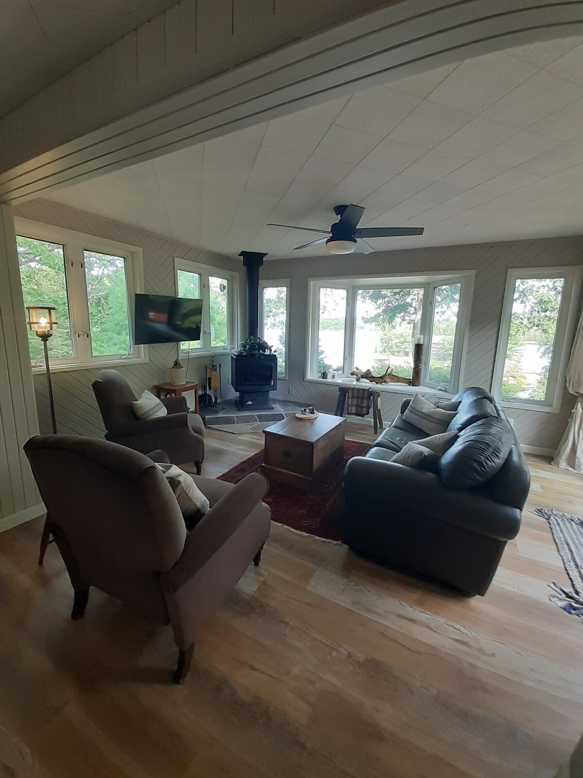Traé a toda la familia a este espacio fantástico con mucho espacio para divertirse. El RV duerme hasta cinco para una pareja con tres hijos. Tiene una gran sala de estar/cocina y una gran casa de pantalla. Barco, natación, esnórquel y pesca incluidos en el precio. Golf para ti y los huéspedes con un descuento. Se pueden organizar clases de golf. Visite el cercano Algonquin Park o el Screaming Heads Park. El host ofrece un paseo por la naturaleza de 2 km. Tim Horton y la tienda de comestibles están a 5 minutos.