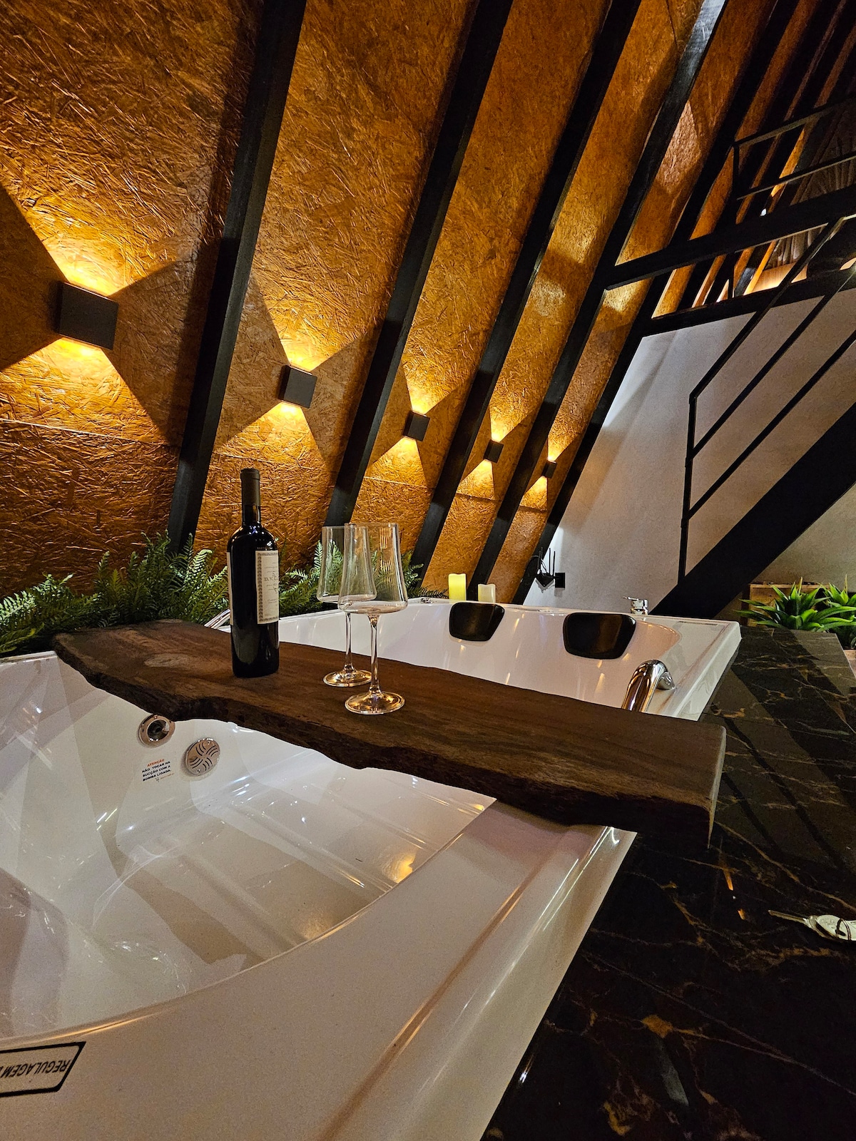 Cabaña de madera en contacto directo con la naturaleza, tenemos un arroyo que pasa en frente al chalet y una hermosa bañera interna. Ofrecemos toda la ropa de cama, toallas, jabón, albornoz, cocina completa, incluyendo copas de vino, champán, cafetera Dolce Gusto con cápsulas, parrilla y chimenea exterior con leña o carbón en un espacio exterior al aire libre entre plantas y árboles. ¡Entrada privada y reservada! ¡Ofrecemos cestas de desayuno! ¡Consúltenos cómo funciona!