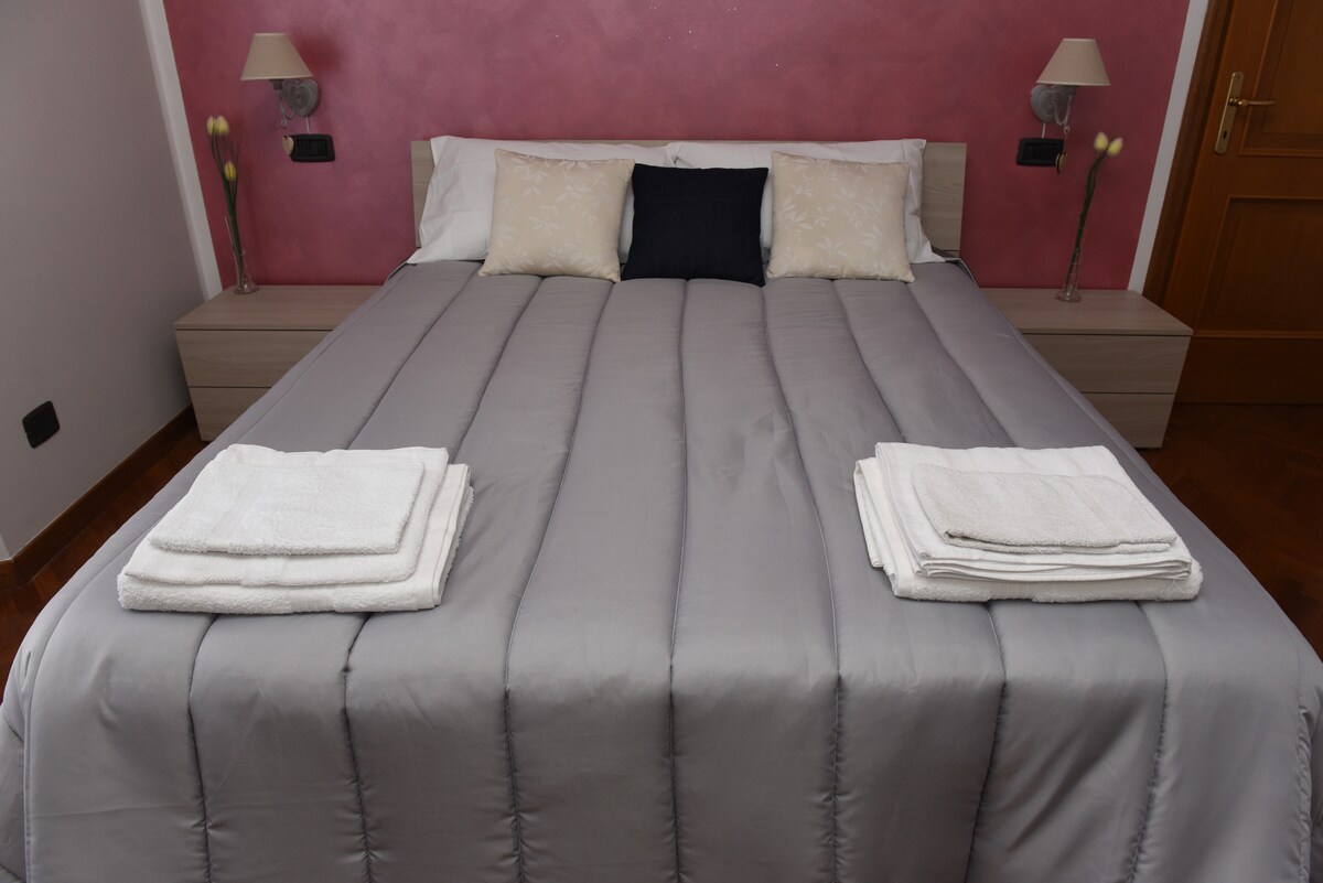 Elegante apartamento a 1,5 km del aeropuerto Orio al Serio BGY, muy cerca del centro de Bérgamo, Orio Center y la Feria de Bérgamo. El apartamento tiene un dormitorio con cama doble, sala de estar con sofá cama doble, cocina equipada, estufa de inducción, microondas, hervidor de agua, cafetera, TV, wifi, aire acondicionado en el dormitorio y la sala de estar, baño con ducha, secador de pelo y lavadora. Llegada autónoma y desayuno ofrecidos por nosotros. El estacionamiento está disponible bajo solicitud.
