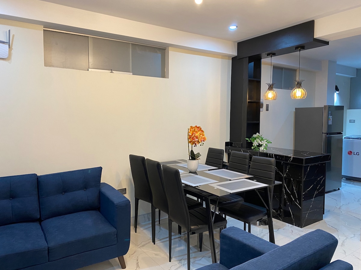 Luminoso, moderno y full-equipado a 6 min del centro 🏡 Ubicado en una urbanización tranquila y segura, ideal para descansar, trabajar o disfrutar en familia. Cuenta con WiFi de alta velocidad, escritorio, cocina completa, juegos de mesa y streamings gratuitos (Netflix, Disney+). Cada rincón está pensado con cariño para que te sientas como en casa. ✨ Pregunta por la cochera disponible con pago adicional cerca al departamento 🚗