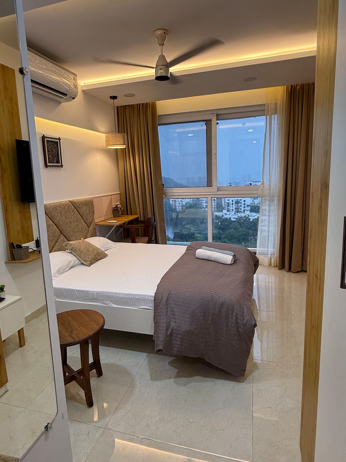 Un apartamento estudio tranquilo y acogedor en el piso 15 A 🌿 3,5 km de Balewadi High Street | A 🚗 700 metros de la autopista Mumbai-Bangalore Despiértate con los relajantes sonidos de la naturaleza: el llamado de los pavos reales, el susurro de las hojas y las impresionantes vistas de Baner Hills, el lago Pashan y las luces de la ciudad, todo desde la comodidad de tu cama.