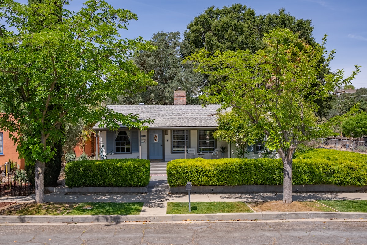 ¡Bungalow clásico de California recién reformado y actualizado! Alójate en el corazón de Paso Robles, a pocas manzanas de los restaurantes, bares, salas de degustación y vida nocturna del centro de la ciudad. Descansa en el espacioso dormitorio con cama tamaño king y una cómoda cama tamaño queen de espuma viscoelástica extraíble en la sala de estar. Wifi y televisores inteligentes de alta definición con Netflix, Hulu y Apple TV en la sala de estar, el dormitorio y el patio trasero al aire libre. Disfruta de una barbacoa y relájate en las amplias zonas al aire libre, que incluyen una terraza, bar, mesa de picnic, parrilla y chimenea.