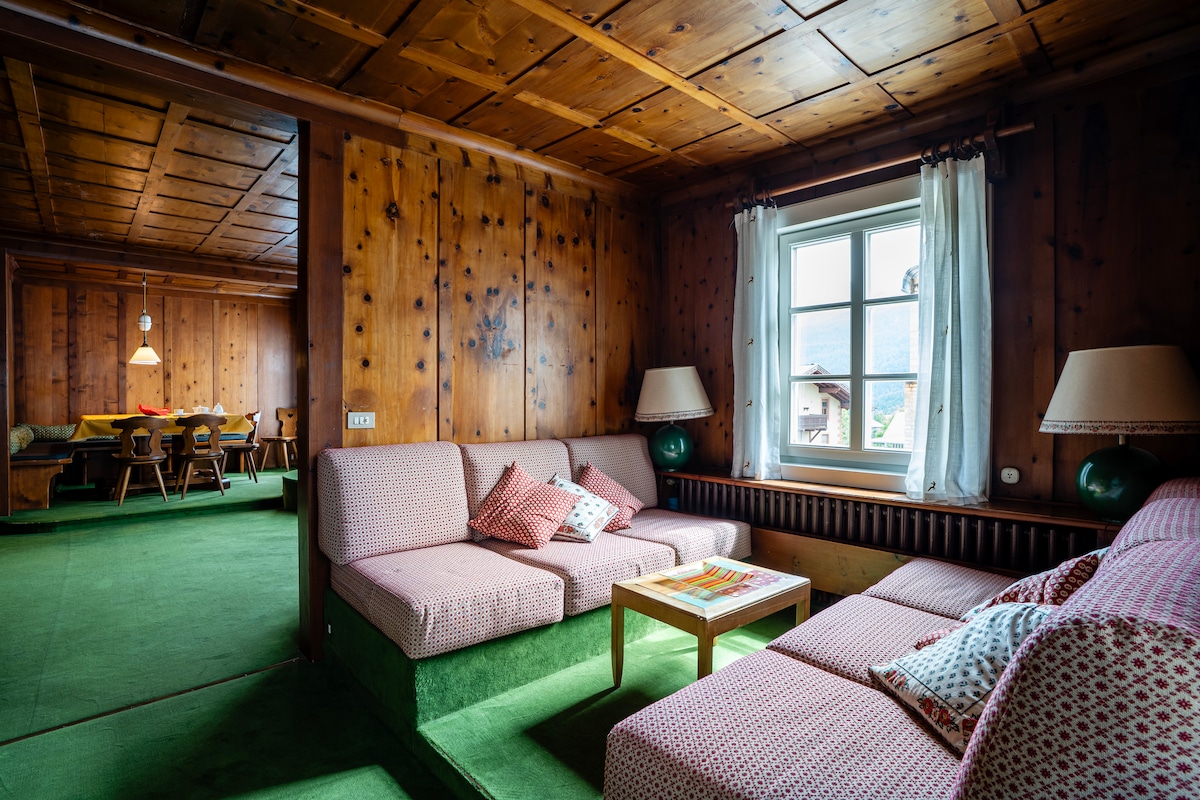 Nuestra casa es cálida y acogedora, huele a madera y está situada en el corazón de la ciudad. Cómodo apartamento a lo largo de la zona peatonal de Cortina, en la primera planta de una típica casa Ampezzo de 1800, fácil de tener todo a tu alcance. Consta de un gran recibidor, salón, cocina y comedor, un dormitorio doble, un dormitorio con dos camas individuales y un baño con bañera/ducha. Equipado con lavavajillas, lavadora, secadora, TV, wifi y todos los accesorios necesarios.