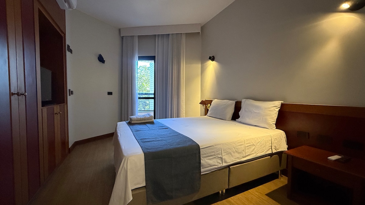 FLAT 831 Garvey Park HOTEL ¡Reformado, acogedor y sencillo! Hotel 3*. ¡Maravillosa ubicación!Cuenta con servicio de hotel, con servicio de habitaciones, balcón, aire acondicionado split, smartTV NET, WI-FI 20MB, Wifi 0831 contraseña: 08083181, minicocina: minibar, microondas, horno, cafetera, sandwichera y plancha de vapor. Se encuentra a 1 km de la estación de autobuses de PlanoPiloto y a 15 minutos del aeropuerto de Bsb. Cerca de 5 centros comerciales, los mejores restaurantes y comida rápida; cerca de los puntos turísticos.