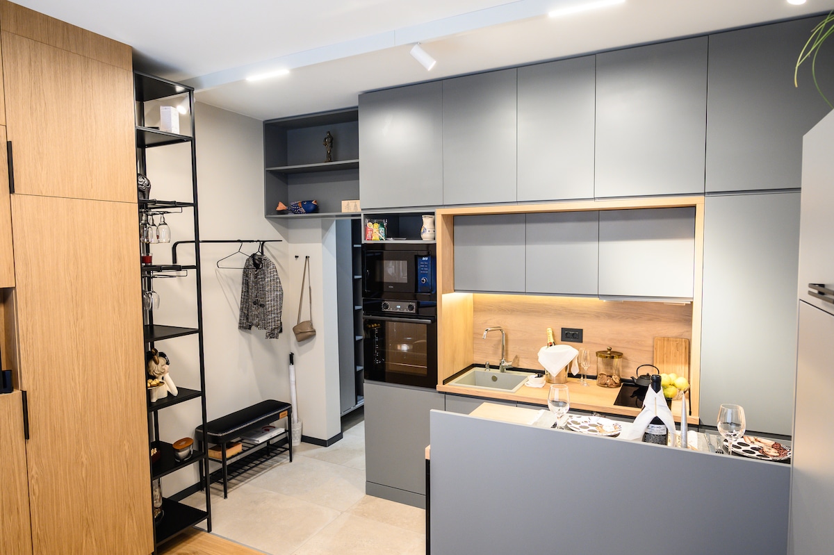 ¡B(11) Smart & Modern Apartment te da la bienvenida justo en el corazón de Sofía! ¡A pocos pasos de las atracciones turísticas más conocidas y de excelentes lugares para visitar! Diseñamos e implementamos personalmente cada detalle de esta suite de esquina naturalmente luminosa, para que puedas sentirte aquí como en casa. Relájate y disfruta de nuestra cómoda cama, servicios de lujo y la mejor selección de café y té. La plaza de aparcamiento subterráneo seguro está a tu disposición exclusiva. Check-in y check-out autónomos y sencillos para una estancia sin complicaciones.