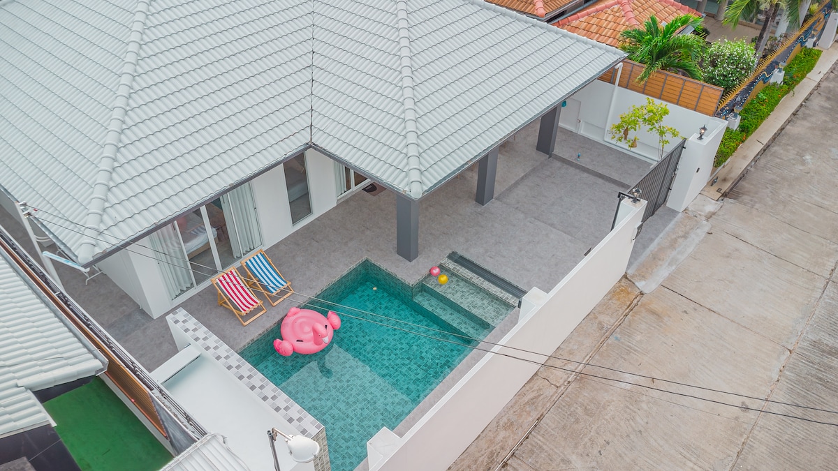 Escapada y retiro villa con piscina privada de 2 dormitorios (1 habitación cerrada con llave, compartida por el propietario), ideal para una estancia relajante o juguetona. • Piscina privada y jardín • Sala de juegos con simulación de carreras + TV de cine de 120pulgadas - Cocina completa para comidas caseras. • Parrilla en el jardín • A 5 minutos a pie de la playa. • A poca distancia del mirador y del templo de Buda. • A 5 minutos del muelle de Bali Hai. - A 2 minutos a pie de 7-11. • A 5 minutos en taxi de Walking Street. • Rodeado de restaurantes, cafés y bares locales - Se admiten mascotas. Perfecto para tus vacaciones.