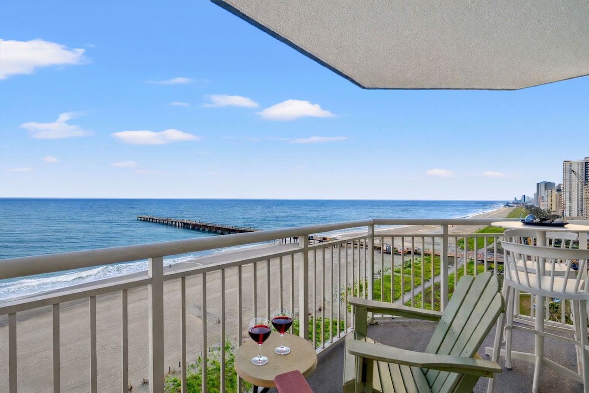 Alójate en este condominio de 3 dormitorios/2 baños en el último piso de Myrtle Beach con vistas al lago, que cuenta con una suite King y dos suites Queen con duchas a ras de suelo. Disfruta de una cocina completa, televisores inteligentes de 55 pulgadas, conexión Wi-Fi gratuita, lavadora/secadora y balcón privado amueblado. La playa está a 5 minutos y a 4 minutos de Broadway at the Beach, tiendas, restaurantes y las principales atracciones. Amplio y cómodo para familias, viajes a la playa y escapadas en grupo, este condominio es el hogar perfecto para las vacaciones de primavera y verano en Myrtle Beach.