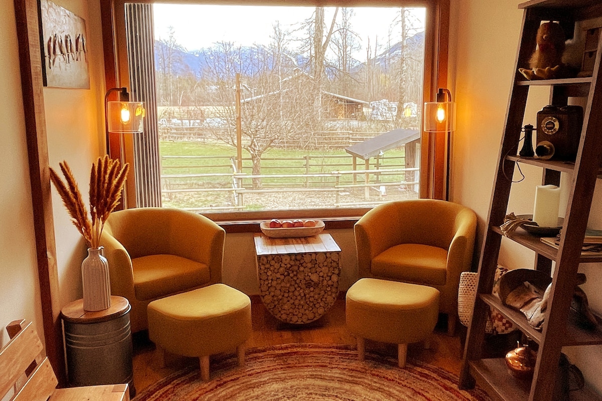 Birken House is located above a home based bakery in the grounds of a 110-year old farmhouse, and is rumoured to be the location of an original stagecoach stop on the Douglas Trail. The suite is south facing, with tasteful decor and big folding doors opening on to an awesome view . It's rustic but contemporary; airy in summer and cosy in winter. It’s 30 minutes north of Pemberton, and is a great base from which to explore Birkenhead Provincial Park, Gates and Anderson Lakes