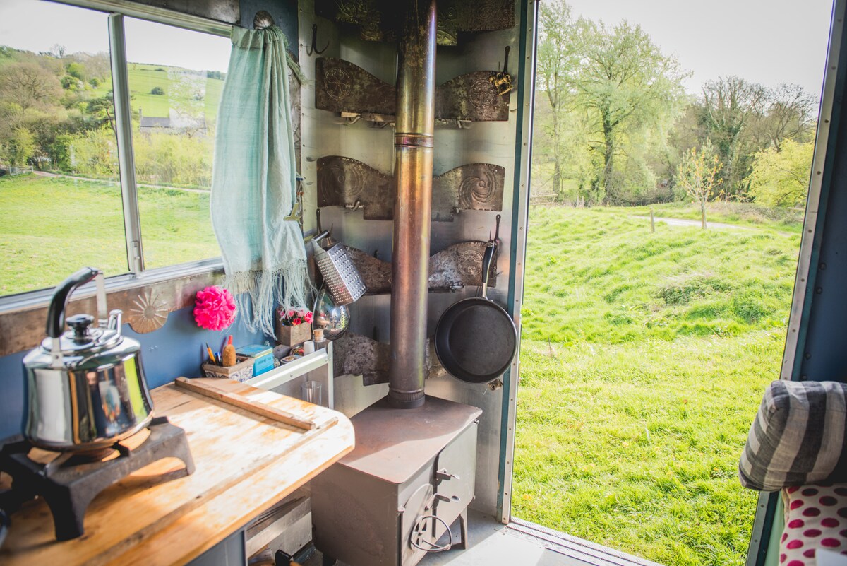 Caravana barata y agradable con vistas a las colinas de Preseli y estufa de leña