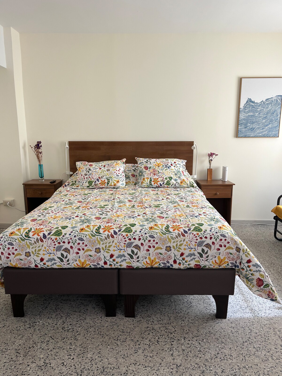 Amplio departamento, equipado para 5 personas. Cuenta con WiFi ESTACIONAMIENTO PRIVADO SIN COSTO AIRE ACONDICIONADO 2 baños con ducha Cocina totalmente equipada y lavadora. A 5 minutos caminado de metro Quilín Muy cercano a Mall Paseo Quilín, entretención y restaurantes de comida rápida y a la carta. Ubicado en 3er piso SIN ascensor o elevador. Todas las camas cuentan con sábanas y ropa de cama (frazada y cobertor). Se entregan toallas para cada huésped.