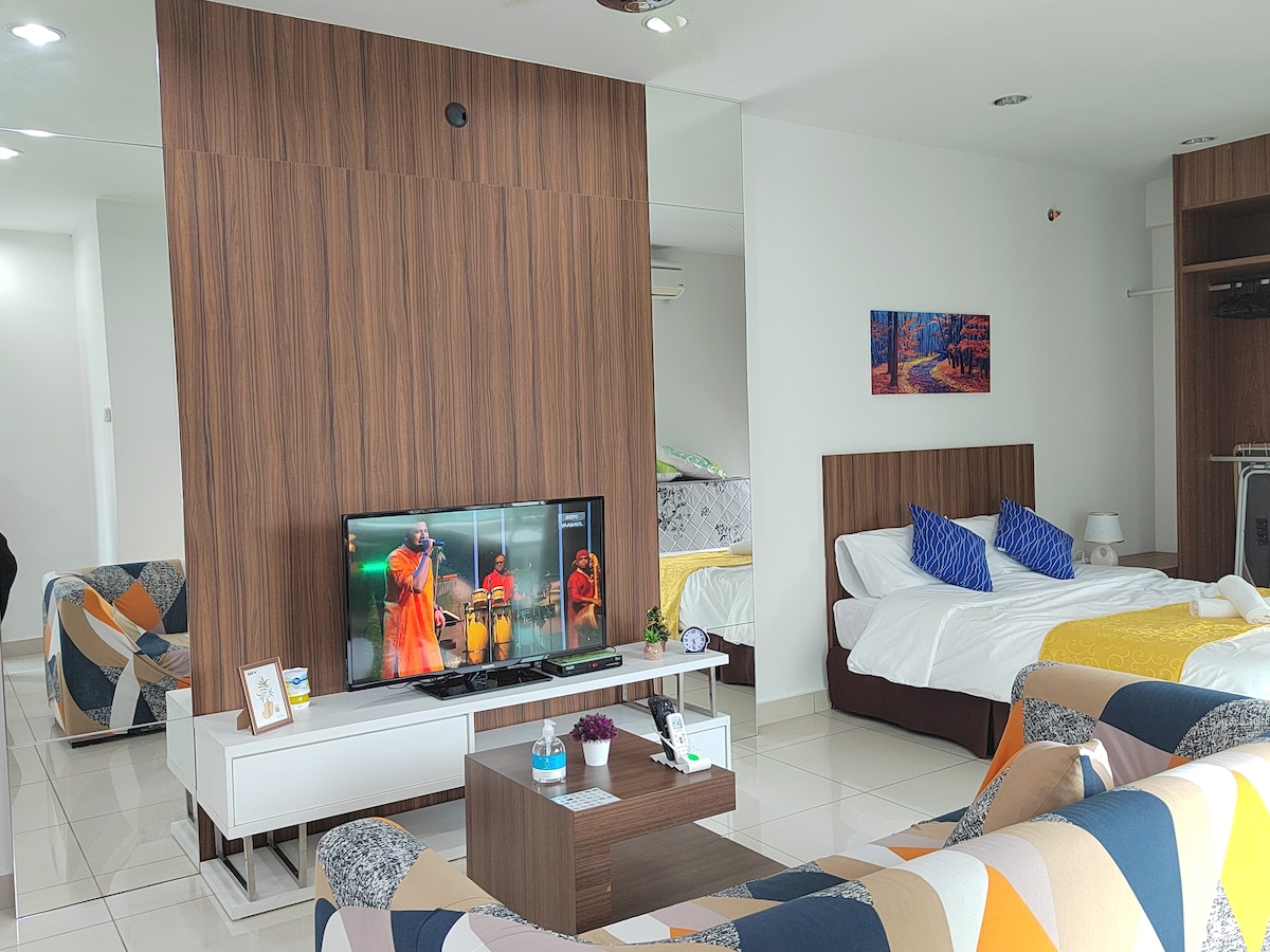 ¿Quieres despertarte con una vista soleada al mar para alegrar tus días? No busques más, el condominio dúplex Sunrise Gurney se encuentra a lo largo de Gurney Drive, 2 dormitorios y 2 baños que ofrece una vista completa al mar desde Gurney Drive, Penang. ¡Adecuado para reuniones familiares, parejas y amigos o una escapada de fin de semana! Hay centros comerciales y variedades de puestos de alimentos disponibles a solo un paso de la puerta. Excelente alojamiento para vacaciones con varias instalaciones para pasar el rato con tu amor