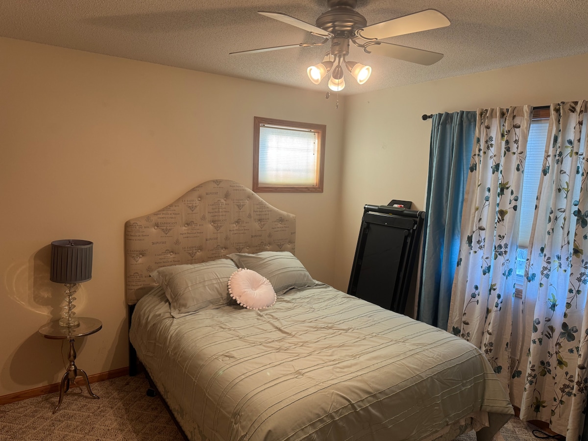 Hermoso entorno rural a 10 minutos de la ciudad, junto a la autopista 59. Tranquilo y silencioso. Granja única de pavos reales, con estanque de vida silvestre, ciervos y observación de aves. Dormitorio privado en una casa grande de 4 dormitorios. Baño privado y acceso a una gran cocina/comedor, sala de estar y lavandería. Conduce hasta la ciudad o relájate y haz una barbacoa en la gran terraza. Garaje disponible. Fácil acceso al Centro Médico Sanford y DigiKey. Hogar perfecto para una estancia corta en TRF o una estancia más larga por negocios o recreación.