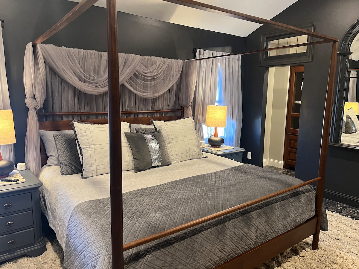 ¡Nueva propiedad, pero el mismo “Golden Slumbers in the Heights” bellamente rediseñado! Ubicado a pocos minutos de restaurantes y tiendas en el centro de Peoria Heights. «Golden Slumbers» cuenta con techos de 10 pies con una lujosa suite principal, que incluye TV de 55 pulgadas, ducha a ras de suelo y bañera de inmersión. La cocina de concepto abierto totalmente equipada permite cenar en la isla de dos lados de 84 pulgadas o frente a la chimenea de gas mientras disfrutas de tu película favorita en el televisor de 55 pulgadas. Lavandería completa a tu disposición para estancias largas.