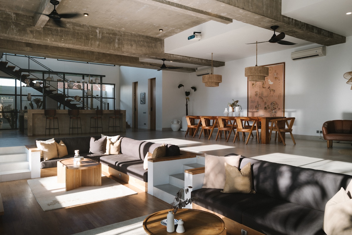Disfruta de Villa Pande, un elegante refugio tropical de 3 dormitorios en Pererenan. Diseñada para una vida relajada en la isla, la villa cuenta con texturas naturales y espacios abiertos que crean una sensación de calma. Relájate junto a la piscina privada estilo laguna rodeada de exuberante vegetación, recarga energías en la sauna privada y disfruta de un entorno ideal para familias o grupos que buscan espacio y privacidad. A pocos minutos de las playas, cafeterías y restaurantes populares, Villa Pande ofrece el equilibrio perfecto de comodidad.
