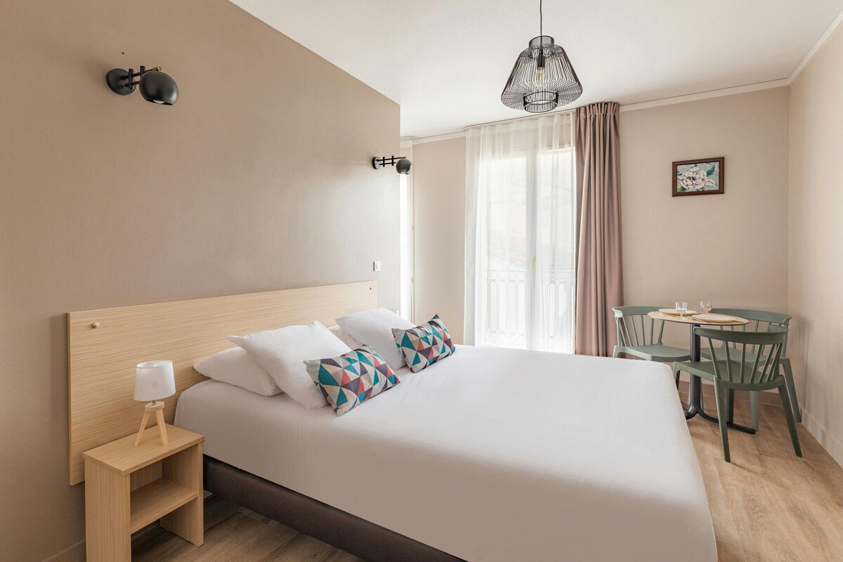 Nuestras habitaciones familiares, diseñadas para recibir a 2 adultos y 2 niños, están equipadas con una cama doble de 160*200, dos camas para niños superpuestas y un baño con inodoro. Tienen aire acondicionado, conexión Wi-Fi gratuita y TV de pantalla plana. Situado en Estillac, nuestro hotel cuenta con una piscina al aire libre de temporada, aparcamiento privado gratuito, jardín, terraza y bar.